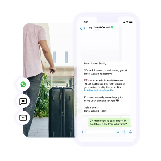 Send express check-in forms to reduce queueing time at the reception thanks to integrations with a range of property management systems in hospitality.