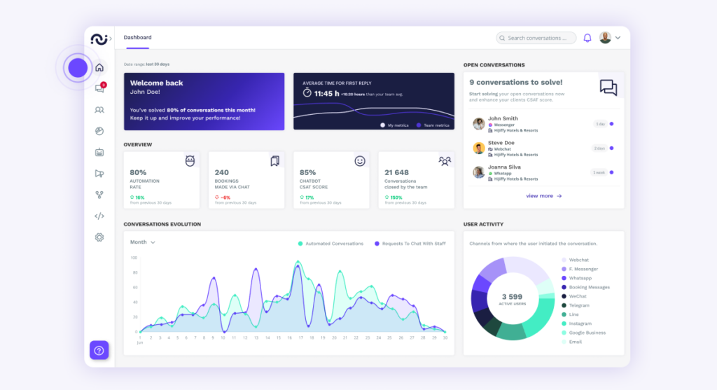 Dans cette série sur les Nouveautés Produit, nous explorons de manière détaillée les différentes caractéristiques et fonctionnalités de la Console, l’interface de notre Hub de Communication Client. Cette approche pratique vise à démontrer à quel point il est simple d’améliorer les échanges avec vos clients en utilisant notre intelligence artificielle conversationnelle. Dans cet article, nous nous pencherons sur le tableau de bord de la Console HiJiffy.
